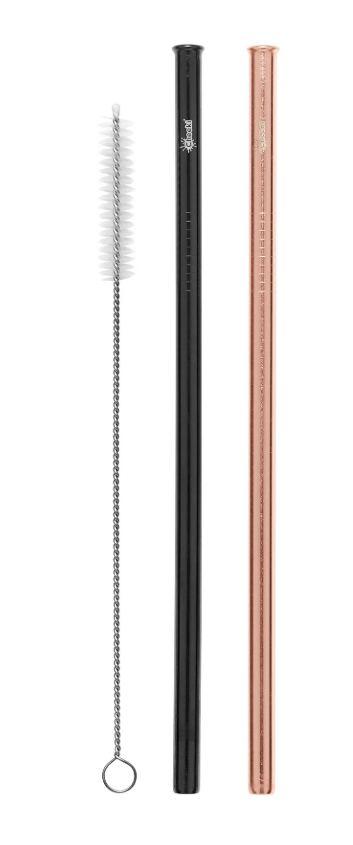 • Set includes 2 straight straws (1 rose gold, 1 black) + cleaning brush